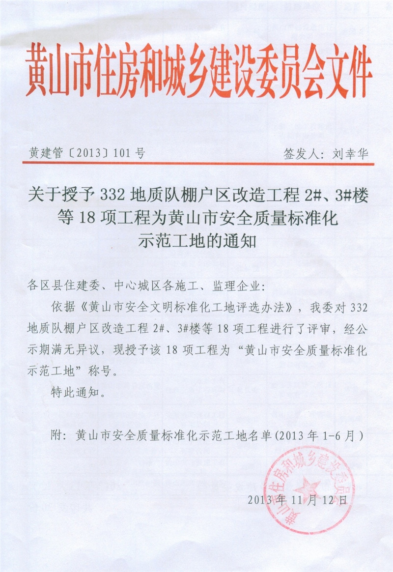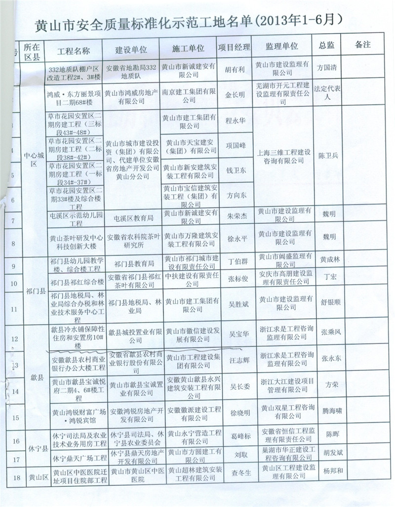 2013年黃山市安全質(zhì)量標(biāo)準(zhǔn)化工地
