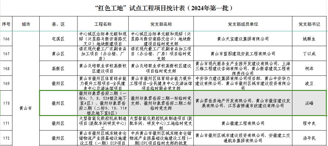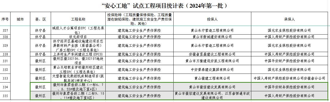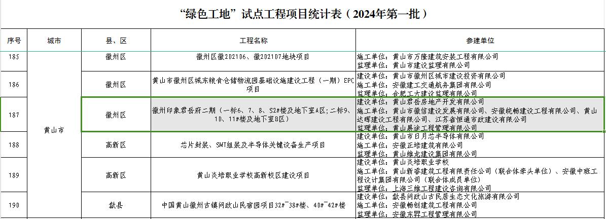 黃山徽信公司承建項目榮獲2024年“紅色工地”、“綠色工地”、“安心工地”評定